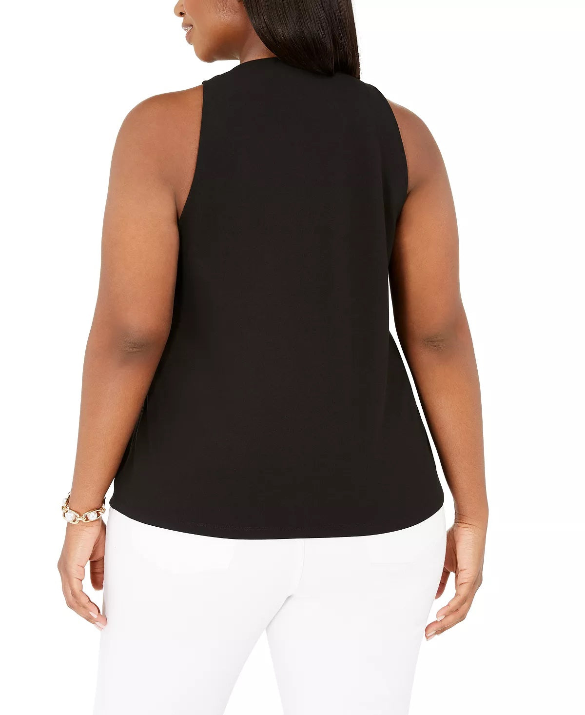 Ask a question about INC Top feminino plus size sem mangas com argola em O, preto, tamanho 1X
