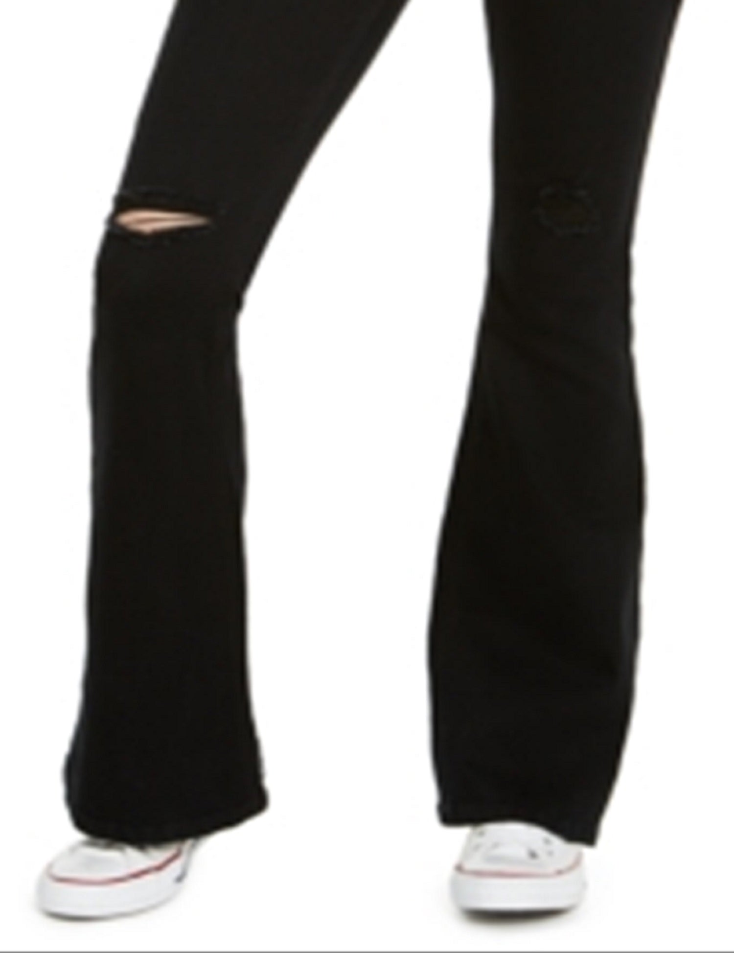 Calça jeans flare rasgada Indigo Rein Junior, preta, tamanho 7