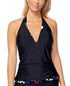 Mantenha-o elegante na praia; um babado com estampa adiciona um toque delicado ao top tankini com decote frente única da Island Escape. | Bojos fixos | Ajuste no quadril | Estilo pulôver; alças de amarração única | Decote em V; babado alface na gola e na bainha | Forrado |