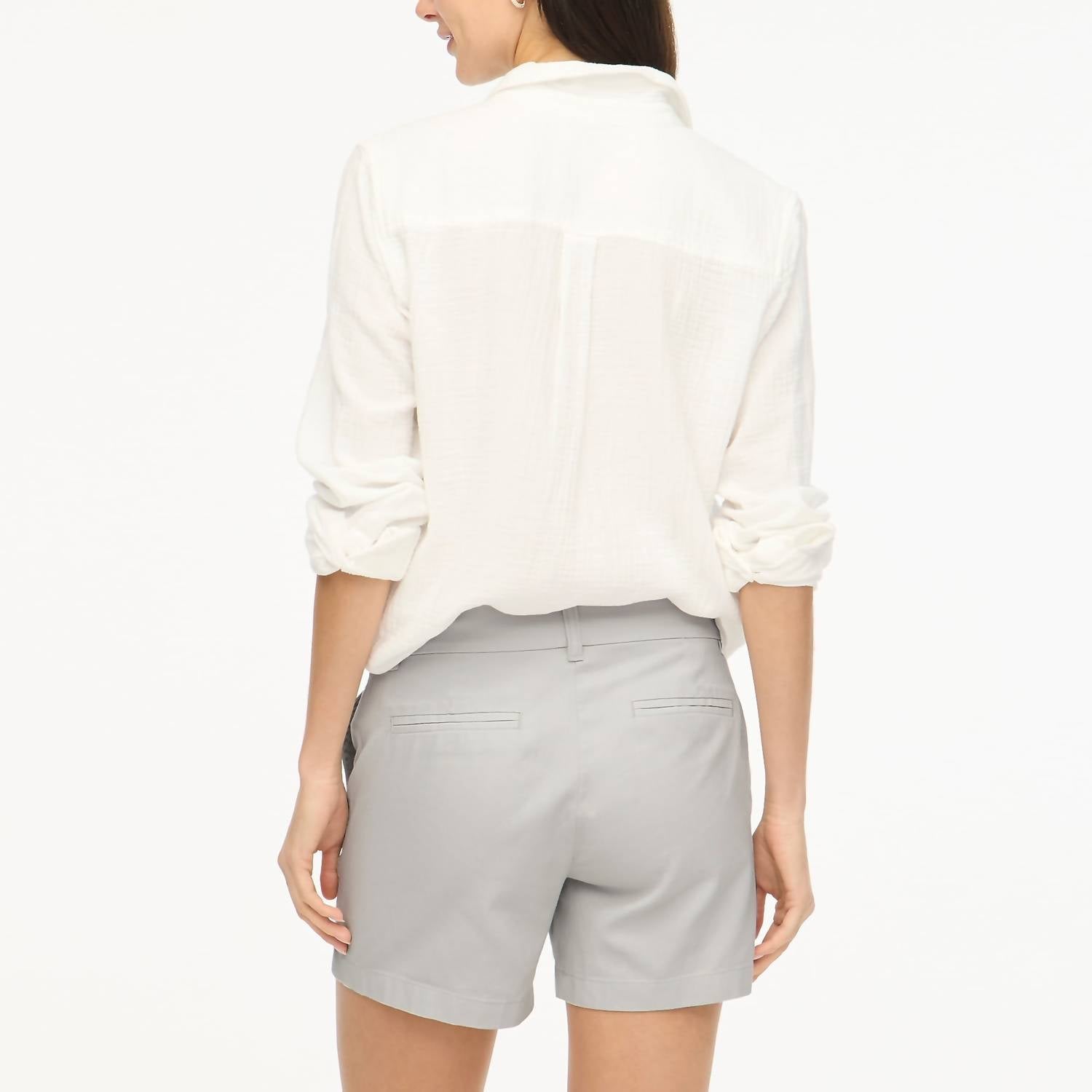 A cintura alta veio para ficar e nós amamos especialmente esse estilo curto. Eleve seu guarda-roupa casual com o Shorts Chino de 5 polegadas da J.Crew, desenhado em um versátil tom cinza. Este shorts tem cintura baixa e oferece uma confortável costura interna de 5 polegadas, sendo feito 100% algodão para respirabilidade. Possui fecho de zíper e bolsos inclinados com bolsos traseiros não funcionais para maior estilo. Originário de Bangladesh, é lavável à máquina e pode ser seco na secadora para facilitar os cuidados.