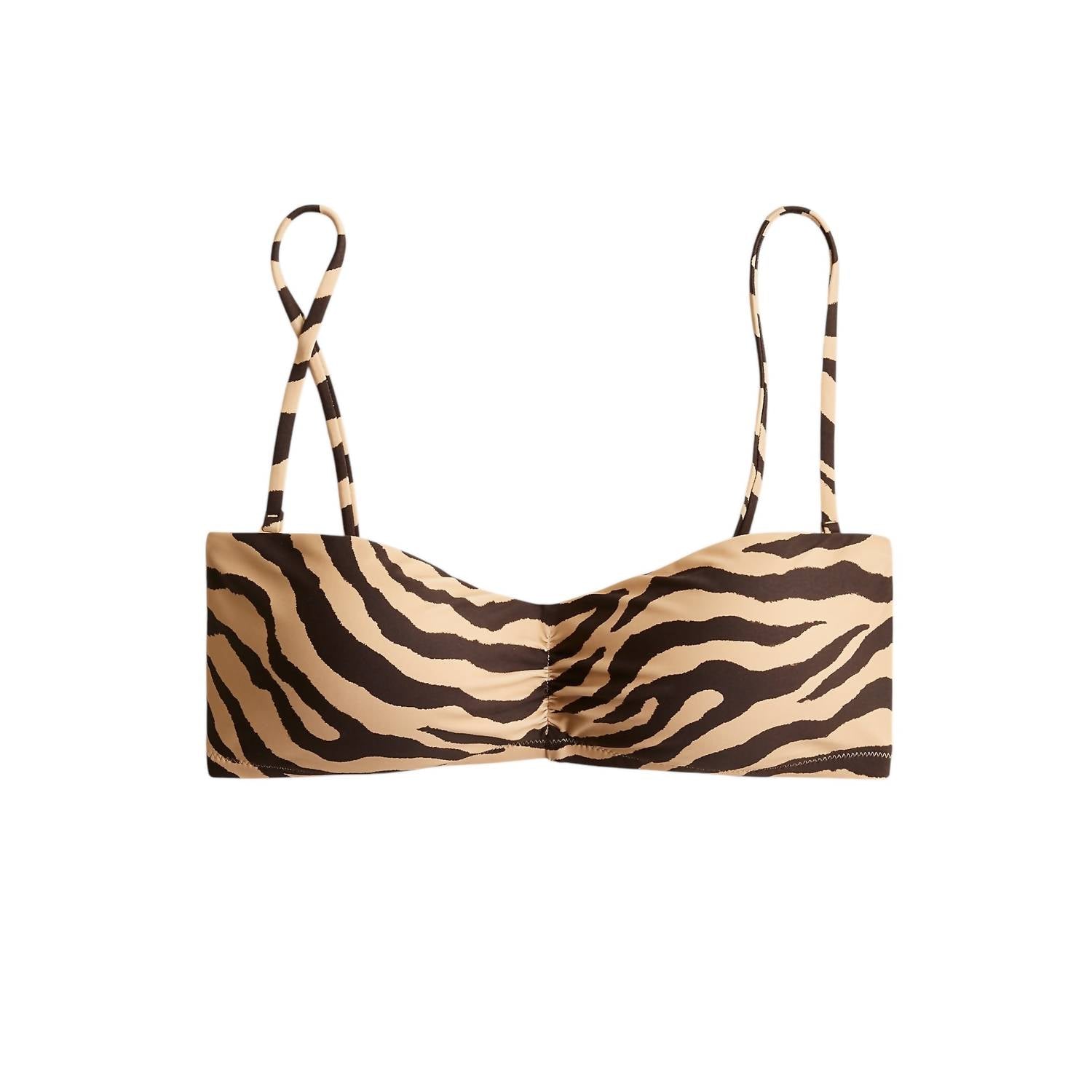 Abrace seu lado selvagem com o Top de Biquíni Bandeau em Listras de Zebra da J.Crew, uma peça essencial e chique para a praia, confeccionada com perfeição. Este top combina uma deslumbrante estampa de zebra com 82% de poliamida e 18% de elastano para um caimento confortável e estiloso. Desenhada com bojo e alça removíveis, esta peça versátil utiliza materiais reciclados ecologicamente corretos, contribuindo para um planeta mais limpo. Originário da China, garante praticidade com instruções de lavagem à máquina.