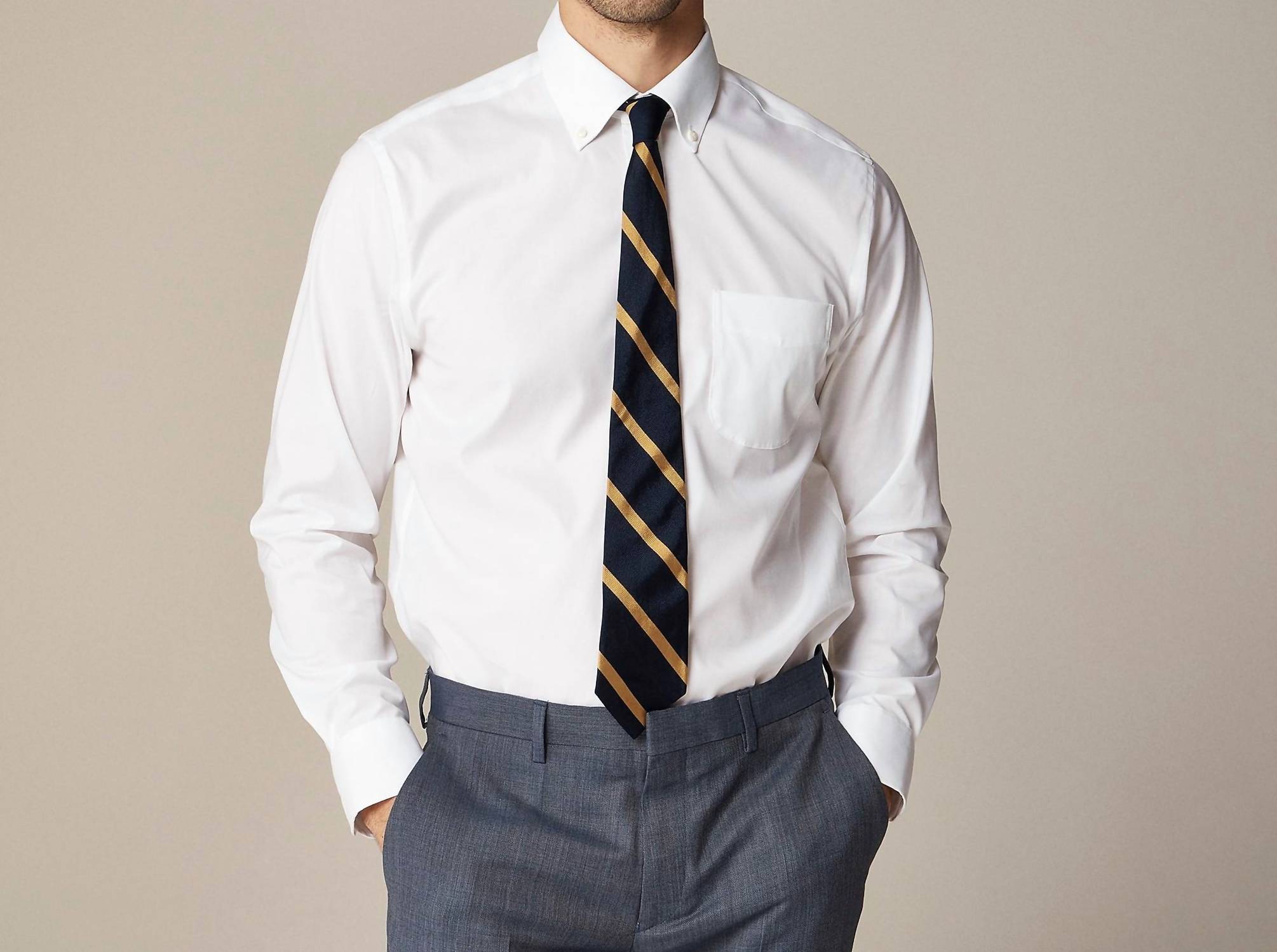 Apresentamos a Camisa Social Bowery Antirrugas da J.Crew, uma adição elegante a qualquer guarda-roupa com seu tom branco sólido e gola clássica abotoada. Confeccionada em uma mistura de 98% algodão e 2% elastano, esta camisa de manga comprida oferece um toque de elasticidade para conforto e flexibilidade no dia a dia. Originária de Bangladesh, esta camisa possui um prático fecho de botão e um bolso prático. Fácil de cuidar, é lavável à máquina e pode ser seca na secadora, garantindo praticidade e durabilidade.