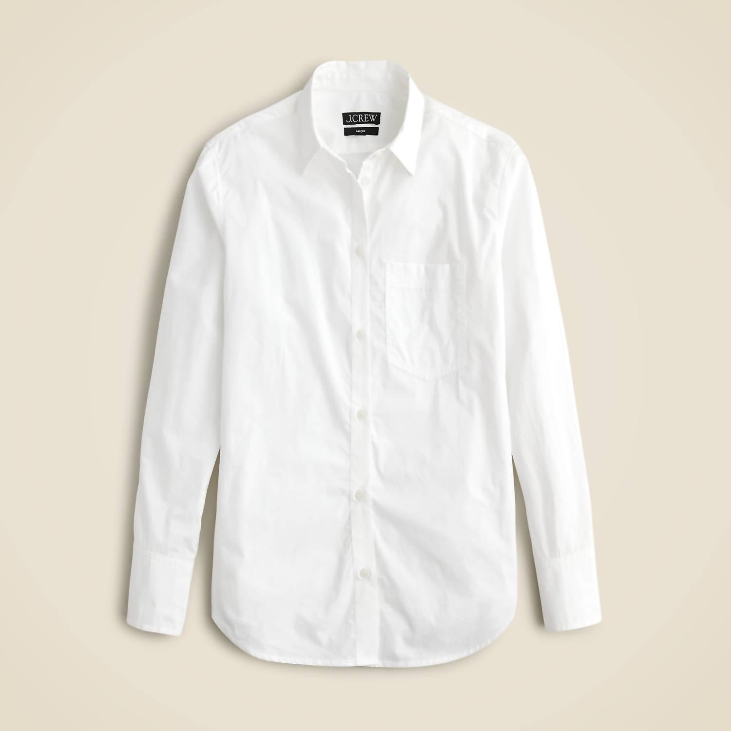 Perfeitamente ajustado e macio ao toque. Experimente o conforto diário com a Camisa Garçon da J.Crew, com um caimento que equilibra o corte slim e o oversized. Confeccionada em 100% algodão com certificação Regenagri, esta camisa de manga comprida com botões promove a sustentabilidade e oferece maciez excepcional. Com 71 cm de comprimento e um design branco sólido, é a escolha ideal para um guarda-roupa versátil. Orgulhosamente confeccionada na Índia, esta camisa incorpora um prático fecho de botão e inclui um bolso para maior funcionalidade. Os cuidados são simples, com instruções de lavagem à máquina e secagem em tambor.
