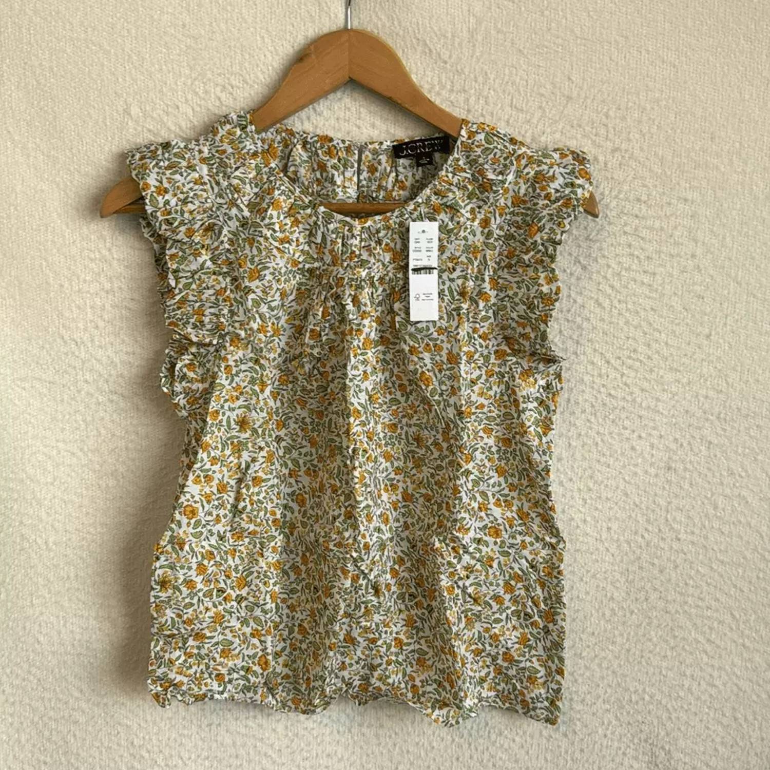 Apresentamos a Blusa com Mangas Babadas e Franzidas em Voile de Algodão Floral Vines da J.Crew, uma blusa deslumbrante sem mangas que esbanja sofisticação. Confeccionada em uma mistura de algodão com 55% algodão e 45% viscose, esta blusa apresenta uma charmosa gola alta franzida e mangas com babados, perfeita para a transição de estação. Fabricada na Índia, tem 56 cm de comprimento e apresenta uma vibrante estampa floral na cor Branco Multicolorido. Cuide desta peça requintada seguindo as instruções de lavagem à máquina e secagem em secadora para mantê-la com aparência de nova.