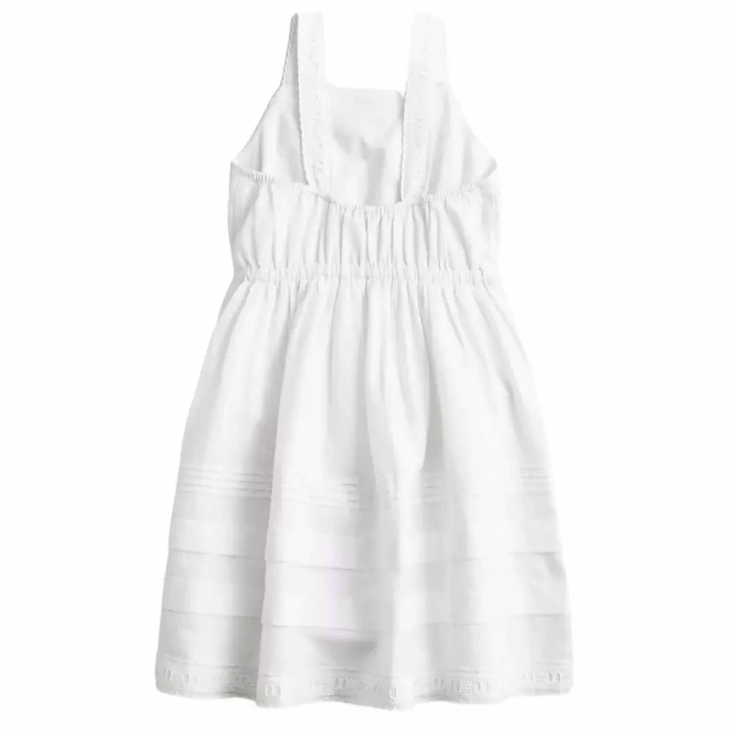 Apresentamos o Vestido Avental com Ilhós para Meninas da J.Crew, uma charmosa mistura de elegância e conforto, perfeito para ocasiões casuais. Composição: 60% linho, 40% algodão, forrado para maior conforto. Este vestido cai elegantemente acima do joelho e apresenta detalhes encantadores como ilhós, camadas e costuras de fita. Com cós elástico para maior praticidade, é lavável à máquina para facilitar o cuidado. Cor: Branco. Estampa: Lisa. Ideal para meninas que adoram um visual estiloso e despojado.