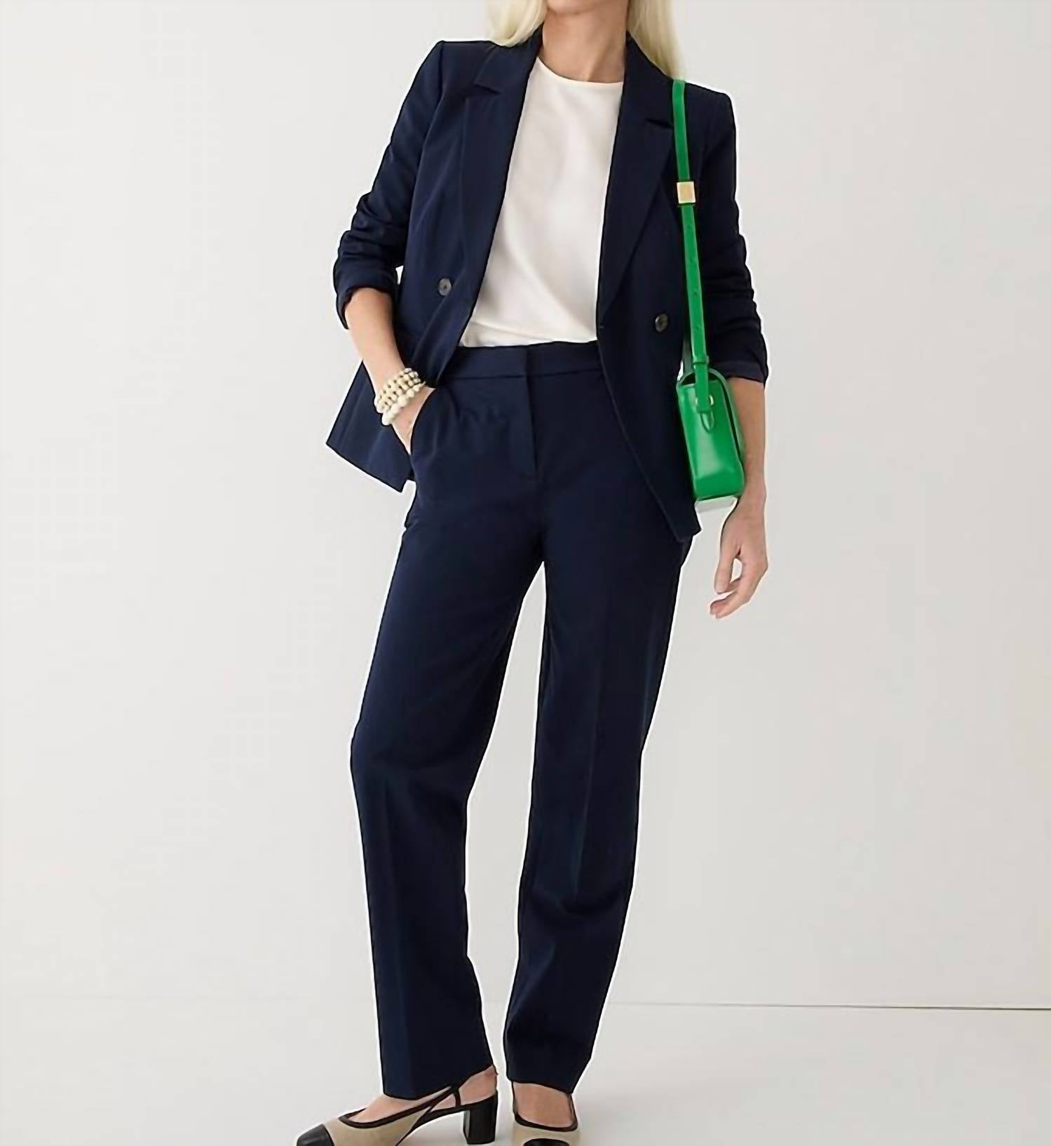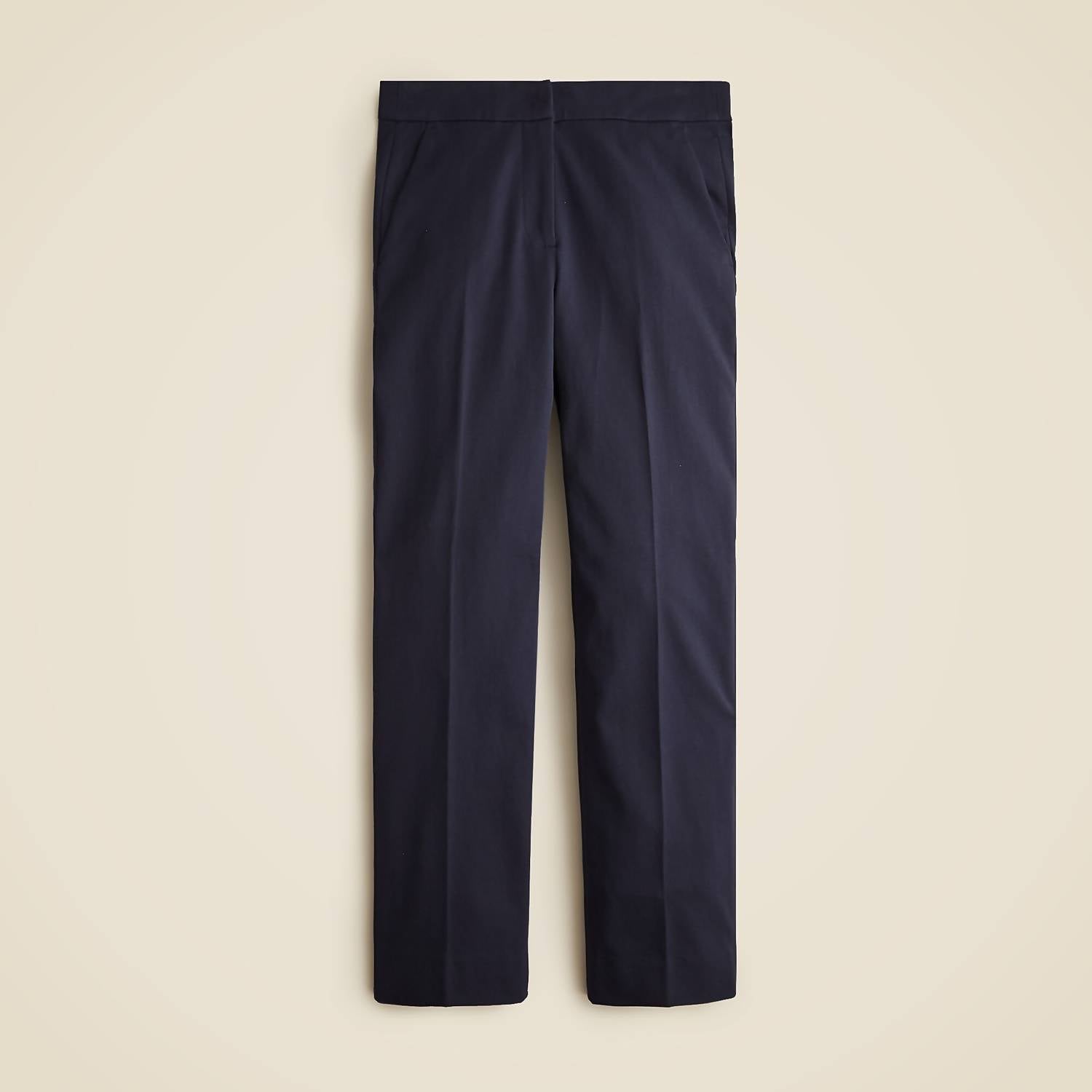 Uma perna reta perfeitamente ajustada que você vai querer em todas as cores! Descubra a Calça Reta J.Crew Kate em um versátil tom azul-marinho, perfeita para qualquer ambiente de trabalho moderno. Esta calça apresenta um corte alto com uma silhueta reta e aerodinâmica, complementada por um conforto confortável no quadril e na coxa. Confeccionada em uma mistura bi-elástica de 52% algodão, 41% viscose e 7% elastano, ela garante estilo e conforto com Perfecting Pockets™. Fechamento: Fecho de zíper. Cuidados: Lavar à máquina e secar na secadora. A calça apresenta um cós frontal de 26 cm, uma costura interna de 66 cm e uma abertura de perna de 39 cm para o tamanho 8, tornando-a uma escolha elegante para qualquer guarda-roupa.