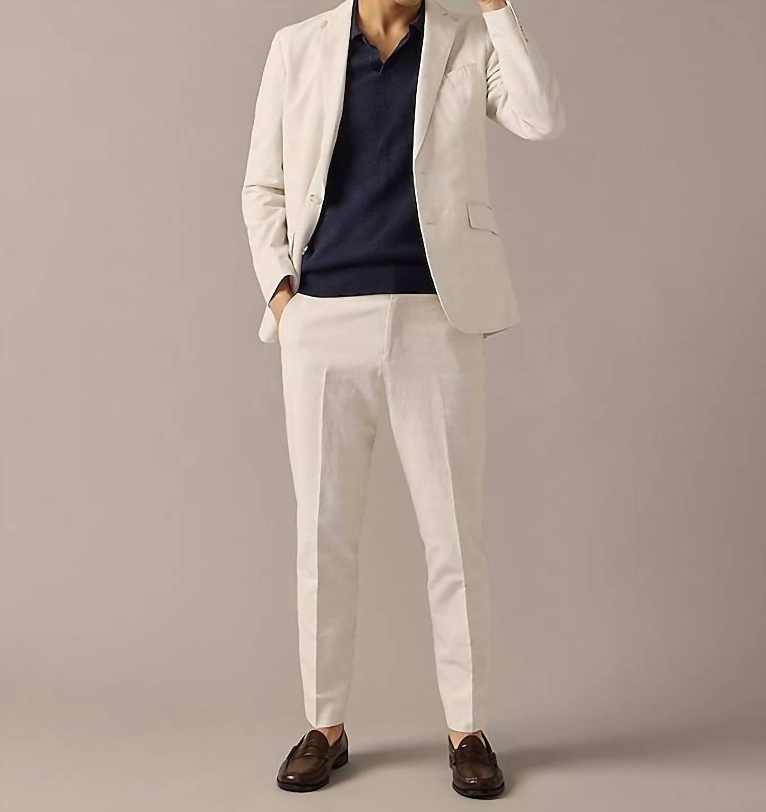 Apresentamos a Calça de Terno Desestruturada Ludlow Slim-fit da J.Crew, confeccionada em uma luxuosa mistura de 72% algodão e 28% linho, proveniente da renomada fábrica irlandesa Baird McNutt. Esta calça na cor creme apresenta perna reta e corte slim, oferecendo uma silhueta sofisticada perfeita para qualquer ocasião. Fechamento: colchete. Cuidados: Lavar somente a seco.