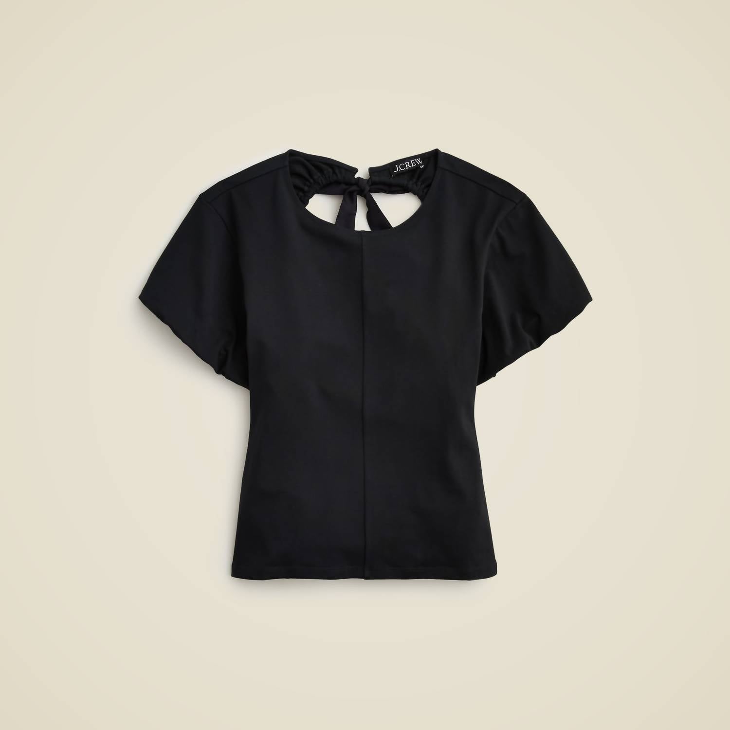 Conheça a blusa J.Crew com mangas bufantes e costas abertas, uma mistura charmosa de conforto e moda. Esta blusa preta tem mangas curtas e gola careca, todas confeccionadas em uma mistura de algodão com elastano para maior mobilidade. Com um detalhe diferenciado de amarração em fita nas costas abertas, ela tem um toque elegante e mede 57 cm de comprimento. Fabricada na Índia, é fácil de cuidar, podendo ser lavada na máquina e seca na secadora.