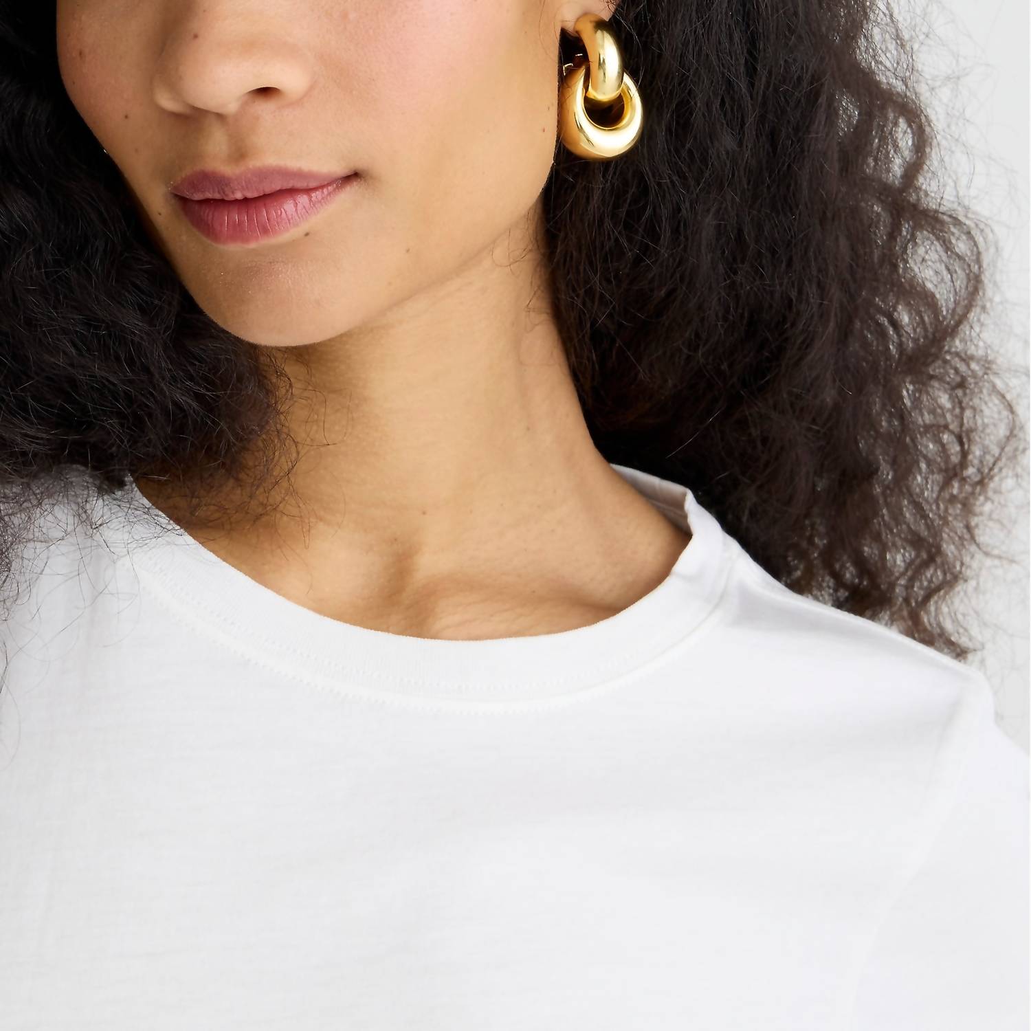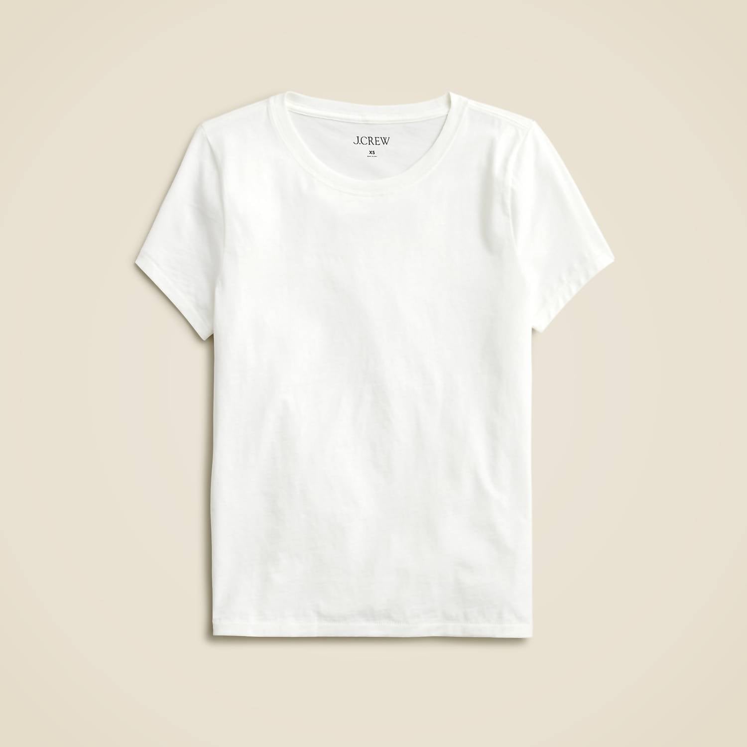 Experimente o máximo conforto com a camiseta slim fit J.Crew Pima Cotton, confeccionada em algodão peruano premium para um toque ultramacio e quase sedoso. Esta camiseta feminina apresenta gola redonda clássica e mangas curtas, proporcionando um caimento mais justo e confortável para o dia a dia. Composição: 100% algodão. Comprimento da peça: 23". País de origem: Peru. Fecho: estilo pull-on. Cuidados: Lavar à máquina e secar na secadora.