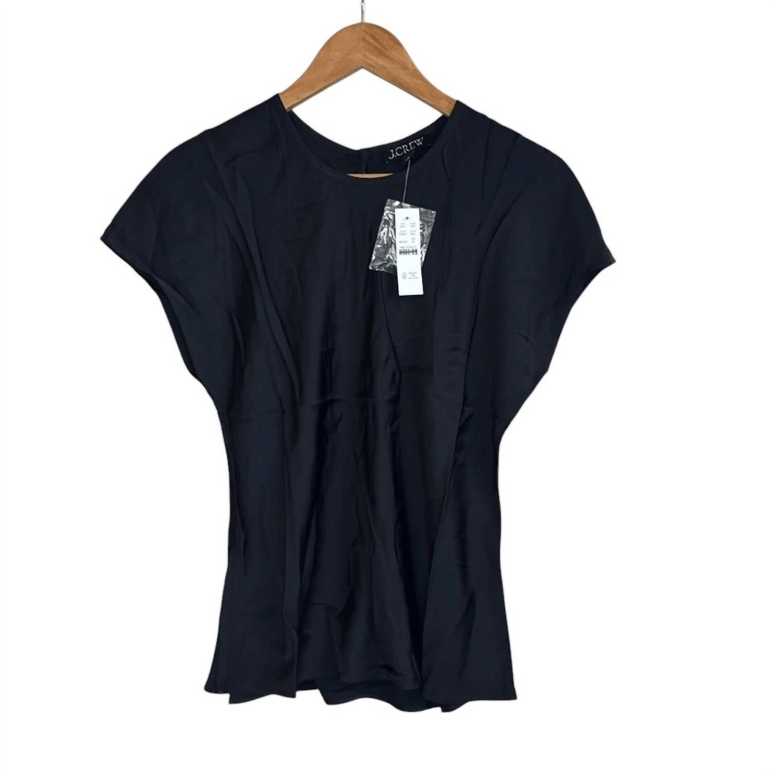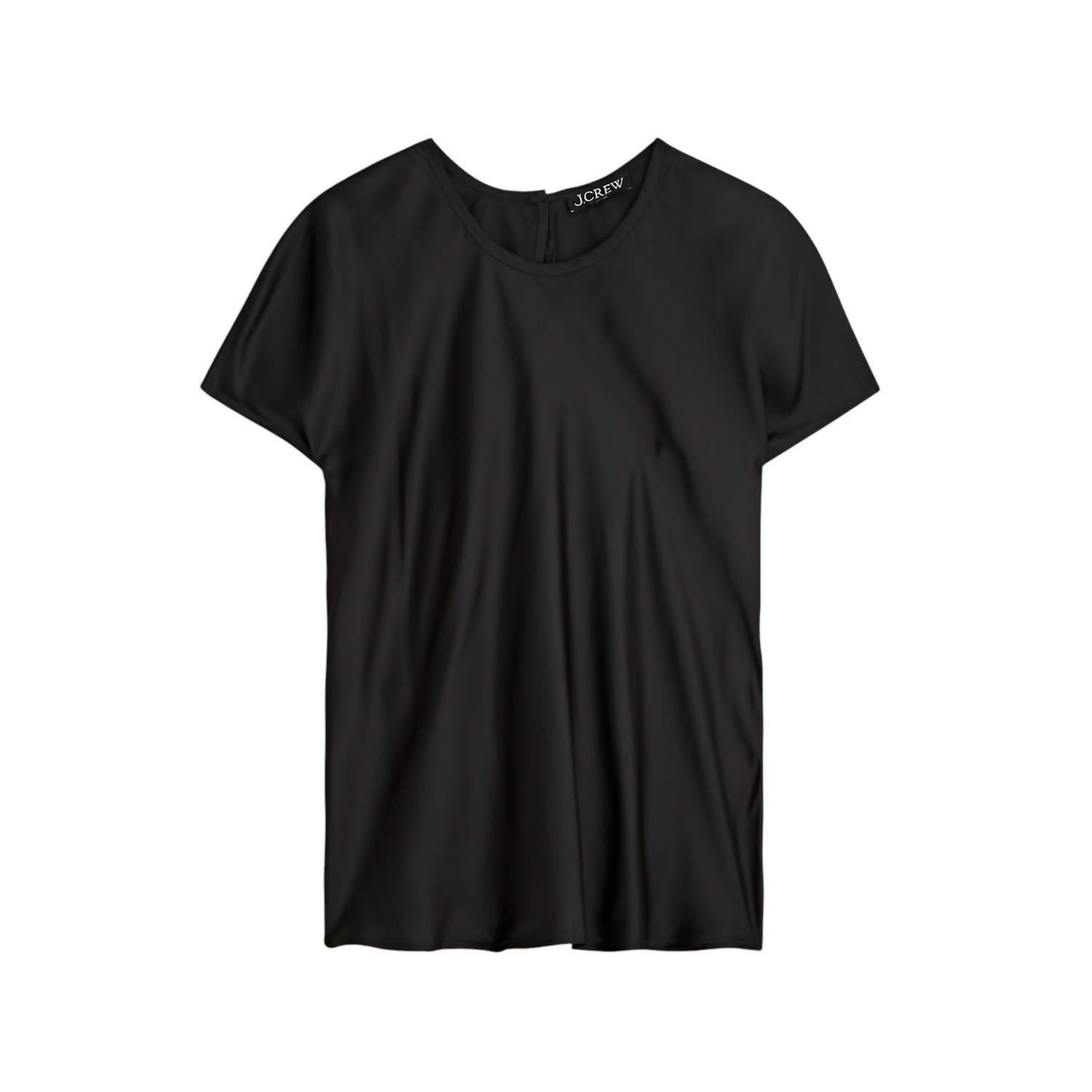 Não procure mais, você acabou de encontrar a camiseta perfeita! Eleve seu guarda-roupa com a Camiseta Feminina Drapey da J.Crew, uma peça sofisticada em preto elegante. Esta camiseta de manga curta, confeccionada em 100% viscose, possui um acabamento acetinado elegante, garantindo um visual refinado, seja usada sozinha ou em camadas. Fabricada na Índia, possui um elegante fecho de botão nas costas, gola redonda e comprimento de 60 cm. Para um cuidado ideal, lave à máquina com água fria e seque no varal.