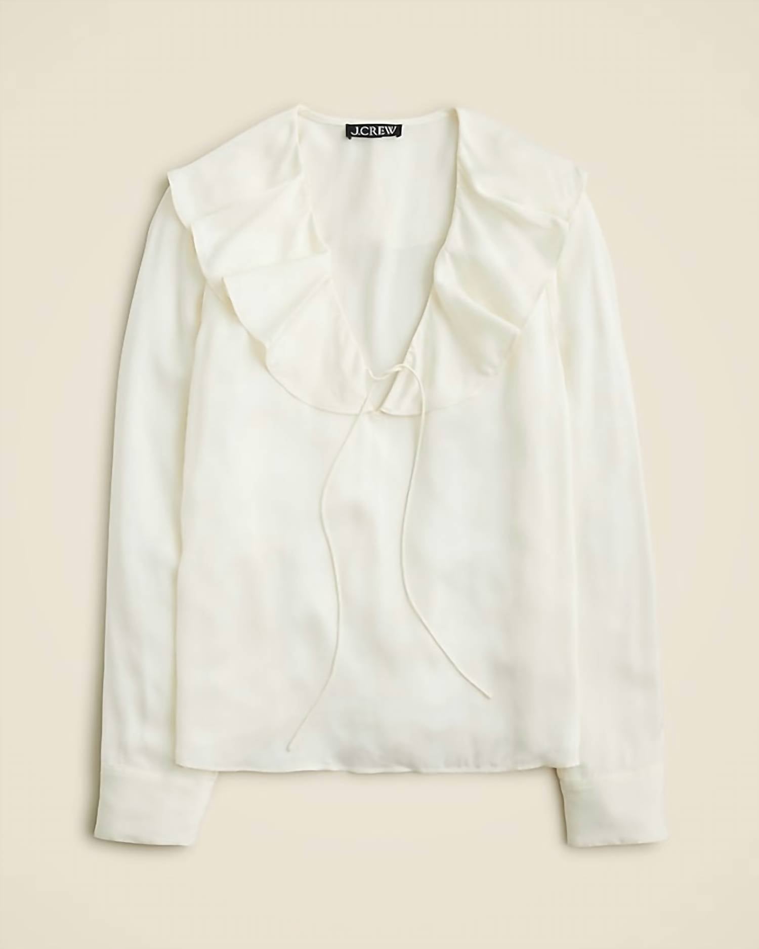 O Top Goldie Feminino em Cetim da J.Crew apresenta uma silhueta de inspiração vitoriana, tornando-o ideal para qualquer ocasião. Com mangas compridas e um elegante decote em V, esta blusa em tom marfim sólido é composta por 100% cetim de viscose. Fabricada na Índia, oferece um fecho prático. Para cuidados, basta lavar à máquina com água fria e secar no varal. A peça mede 60 cm de comprimento.