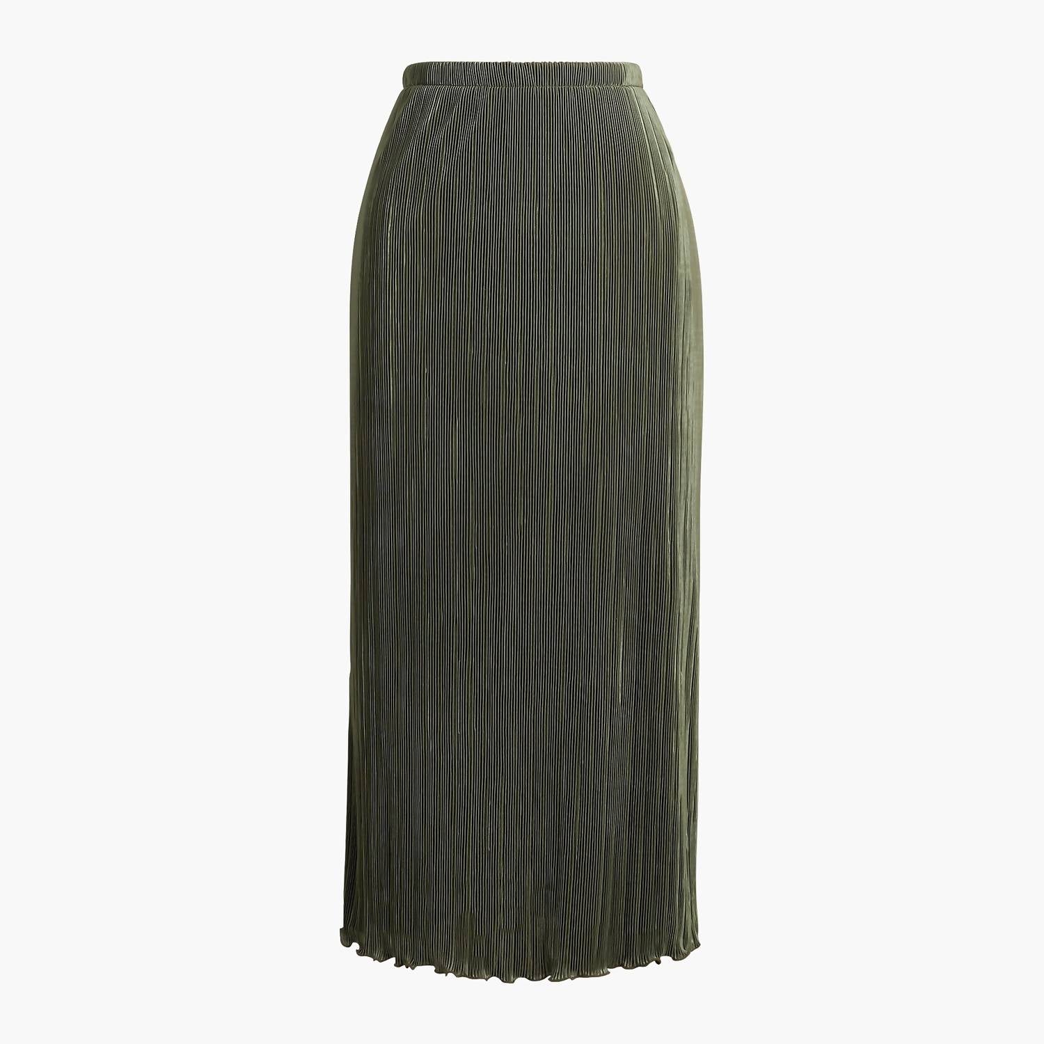 A saia de comprimento midi veio para ficar e nós amamos especialmente esse estilo. Eleve seu guarda-roupa com a Saia Plissada Feminina da J.Crew, uma saia midi chique com acabamento texturizado verde. Esta saia em corte A assenta graciosamente acima da cintura e tem um comprimento de 76 cm, caindo elegantemente abaixo do joelho. Confeccionada em 100% poliéster e fabricada no Vietnã, possui cós elástico para um fecho confortável. Cuide da sua saia com facilidade, pois ela é lavável à máquina e pode ser seca na secadora.