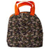 The Kid's One With The Woods Camo Lunch Box by Jane Marie is crafted with a water-resistant canvas exterior in a khaki camouflage design. Its interior features a PEVA lining and a flat, structured bottom for durability. The lunch box includes a zip-top closure, a large exterior slip pocket, and dual top handles, folding flat for easy storage. Dimensions: 8.5" W x 5" D x 8" H. Care: Wipe clean with a damp cloth.