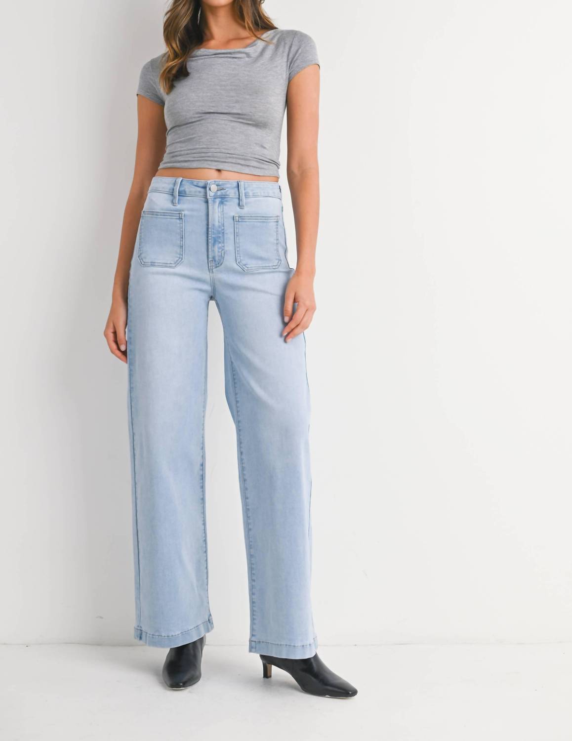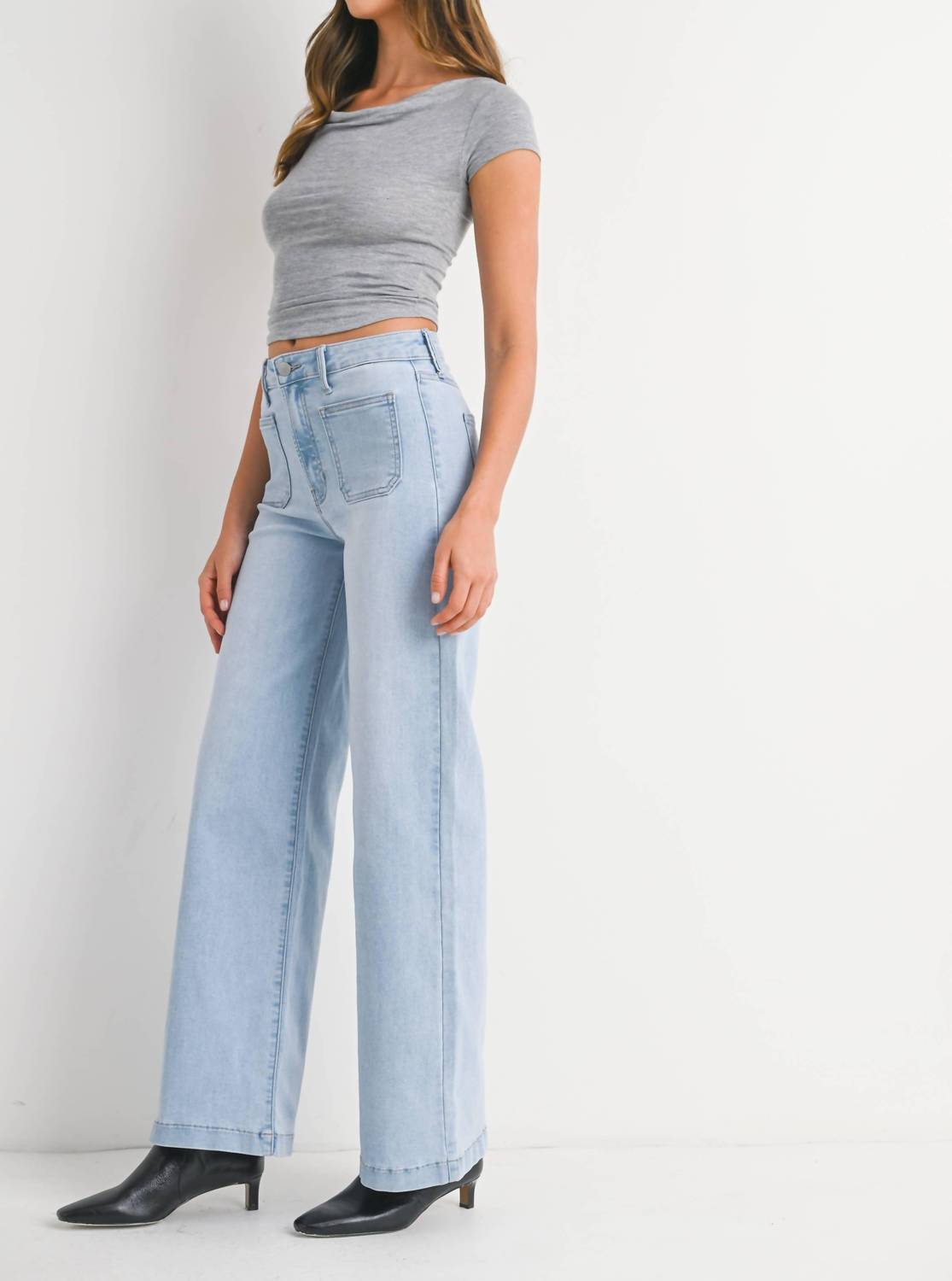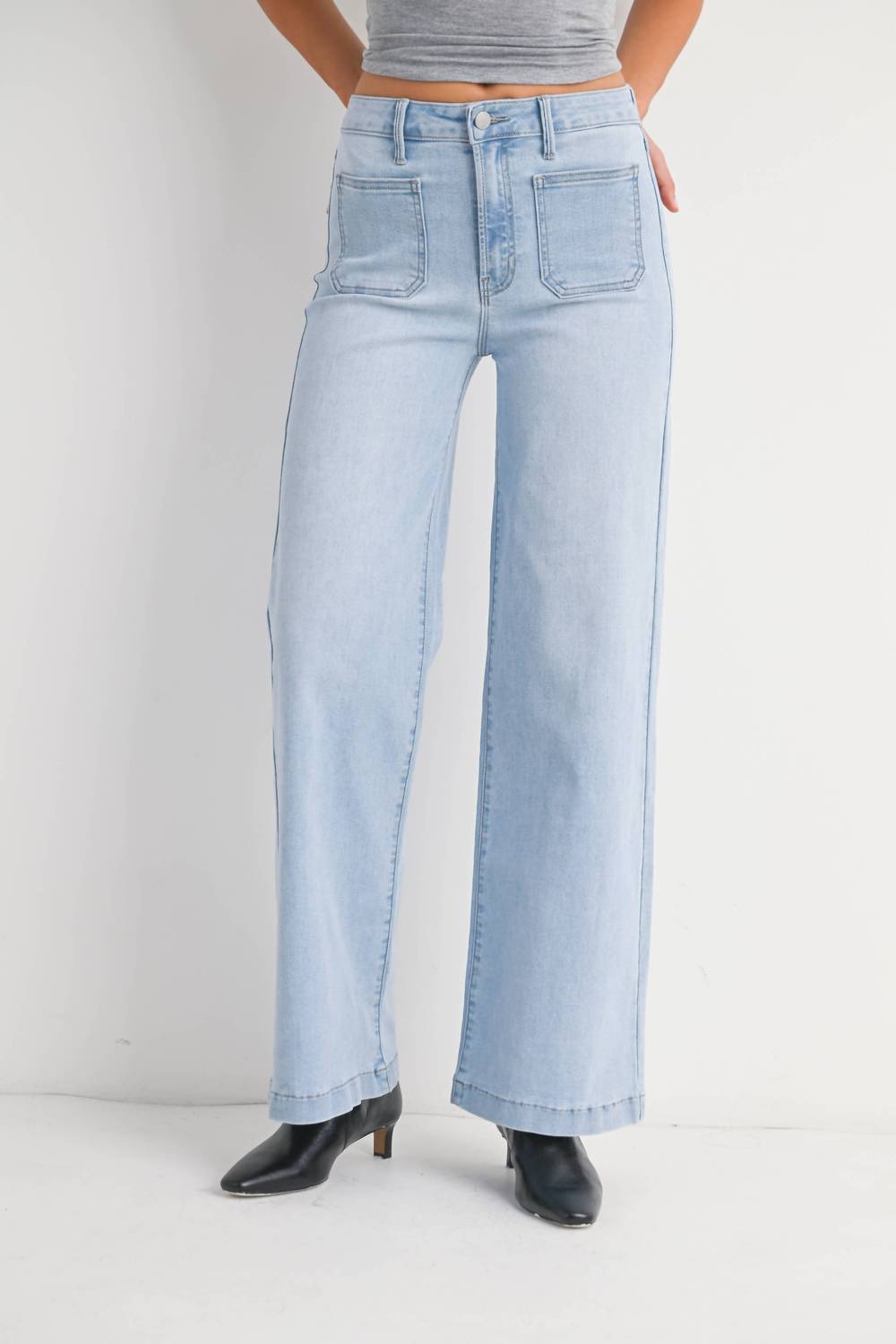 Uma silhueta elegante e surpreendentemente versátil. Apresentamos a Calça Jeans Larga Mini Patch Pocket da JBD, uma adição chique ao seu guarda-roupa casual em jeans leve. Esta calça jeans apresenta um estilo de perna larga com um cós médio confortável de 28 cm e uma costura interna de 78 cm, complementada por mini bolsos de aplicação divertidos. Confeccionada em jeans durável, ela oferece um caimento clássico que garante versatilidade e praticidade. Tipo de Fecho: Botão. Cuidados: Lavar à máquina e secar no varal para maior durabilidade.