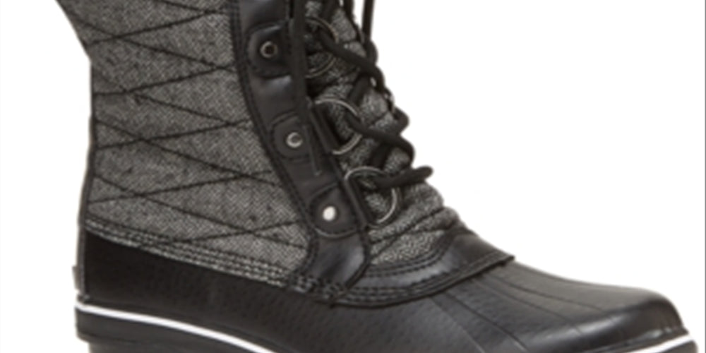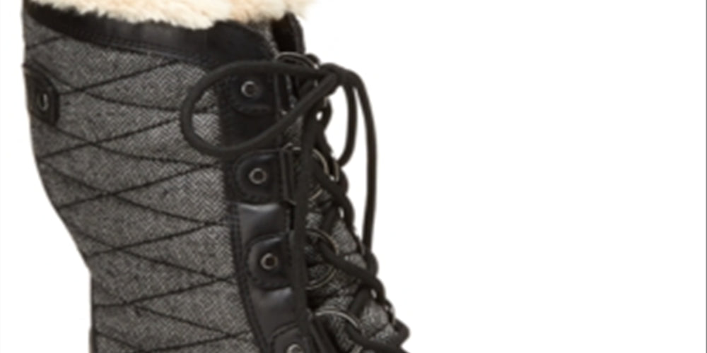 Botas de neve femininas JBU com plataforma, acabamento em pele, resistentes à água, acolchoadas, Lorna, bico redondo, salto bloco, cadarço, pretas, tamanho 8