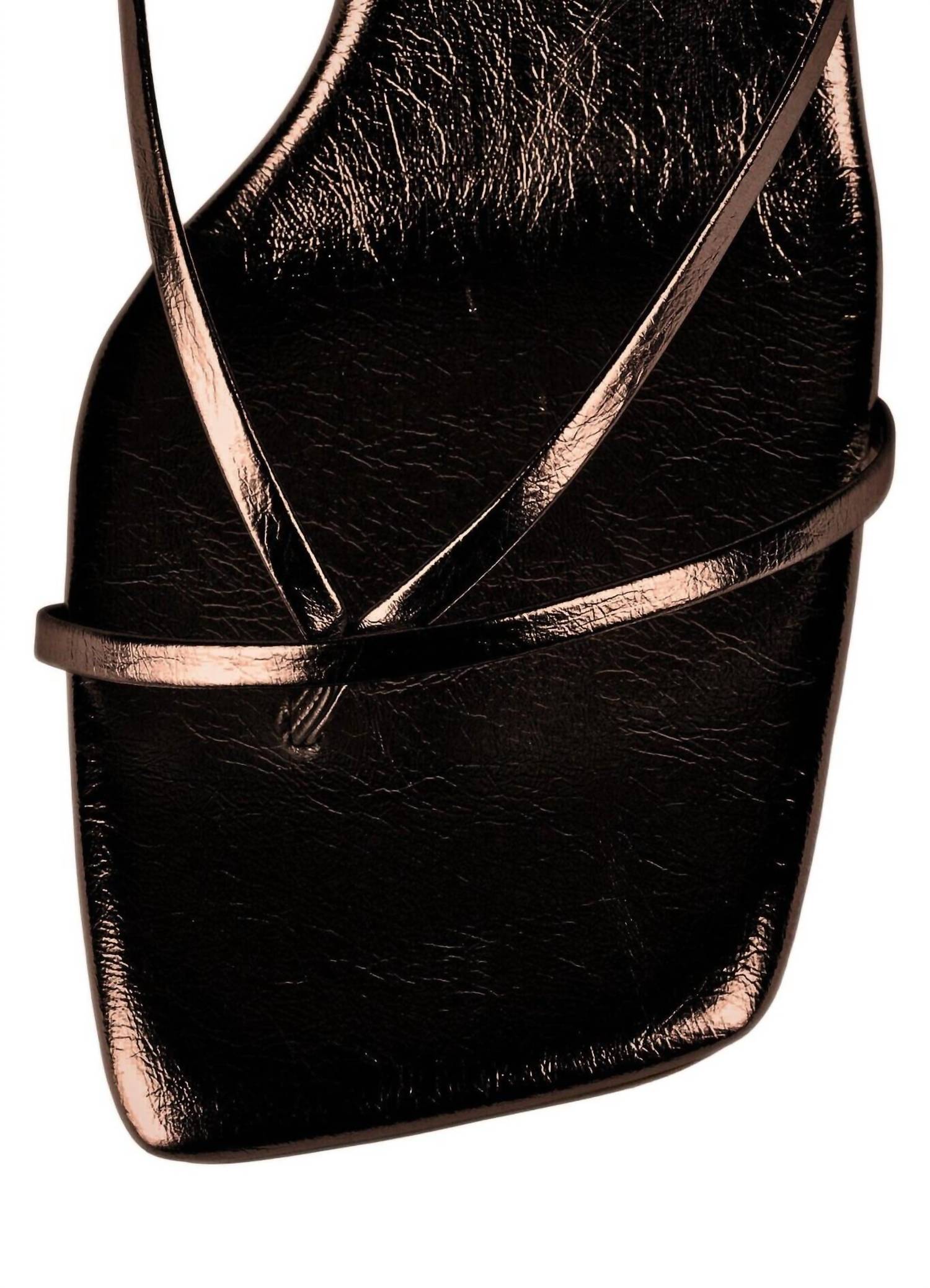 Elevate your summer ensemble with the Women's Fluxx Strappy Sandal by Jeffrey Campbell, a statement in Quiet Luxury. This sandal features a chic squared toe design and a comfortable kitten heel measuring 2.75 inches, perfect for evening events. Crafted with a leather upper, synthetic lining, and synthetic sole, it ensures durability and style. The sandal comes in a captivating Bronze Metallic hue with a convenient buckle closure.