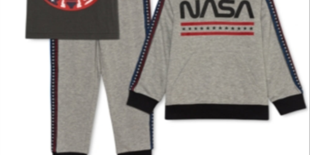 Conjunto de 3 peças de camiseta com capuz e calça de moletom da Nasa para meninos Jem Toddler, cinza, tamanho 2