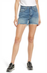 Shorts jeans feminino JEN7 Easy Ruby de cintura alta com corte relaxado, azul, tamanho 27
