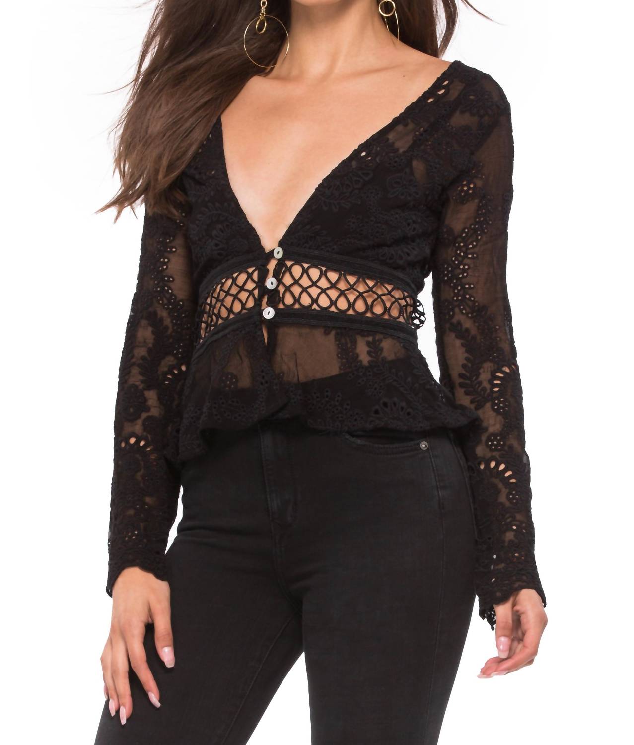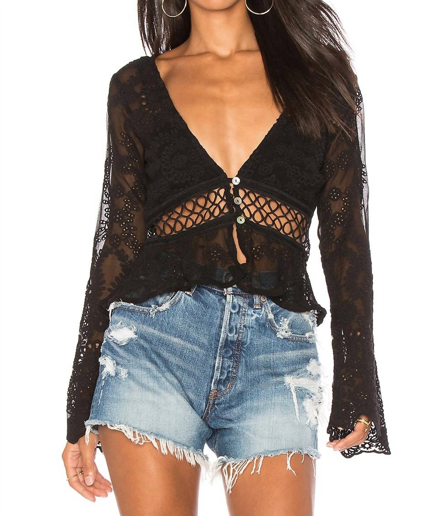 Revele seu espírito boêmio com o Top Sierra Madre Mesh da Jen's Pirate Booty, a escolha perfeita para um dia de praia com inspiração grunge. Com mangas longas, onduladas e alargadas, confeccionadas em crochê rendado 100% algodão com acabamento em treliça intrincada, esta blusa preta com ilhós traz textura delicada e elegância ao seu guarda-roupa de verão. Sua estampa texturizada e decote em V conferem um estilo distinto, embora não possua bolsos e um tipo específico de fecho. Cuide desta peça única lavando-a à mão e secando no varal para manter seus detalhes e acabamento deslumbrantes.