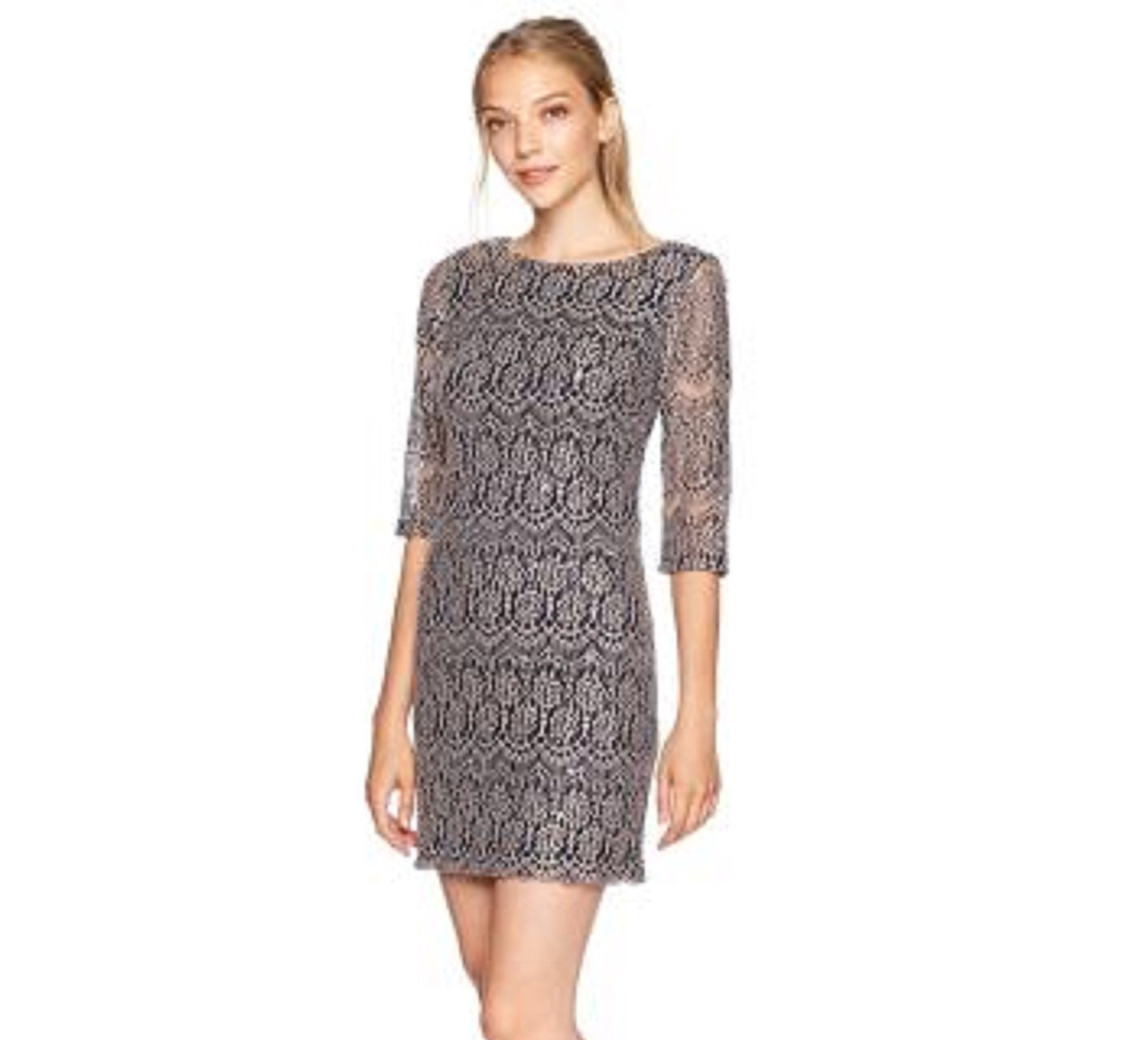 Vestido de renda feminino Jessica Howard Petite Shift, cor carvão, tamanho 6P