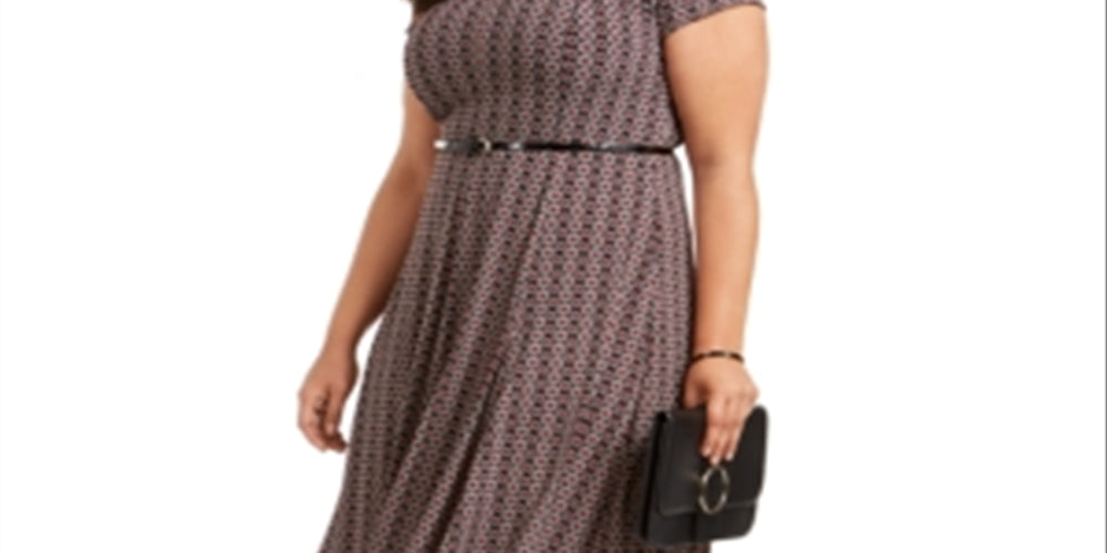 Vestido feminino plus size com cinto e estampa bufante Jessica Howard, preto, tamanho 20W