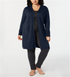 O cardigan plus size da JM Collection tem bainha na altura da coxa para maior cobertura e sutis detalhes de tiras cruzadas nos punhos. Este modelo com frente aberta foi projetado para ser usado em camadas com facilidade. | Frente aberta; sem fechos | Detalhes de cadarço nos punhos | Ajuste fácil; leve | Atinge a coxa; comprimento; aprox. 37 |