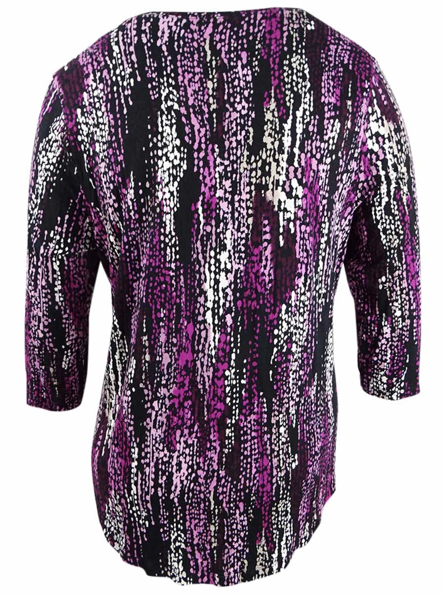 Top feminino estampado com decote redondo e manga comprida JM Collection, preto/rosa, tamanho 0X