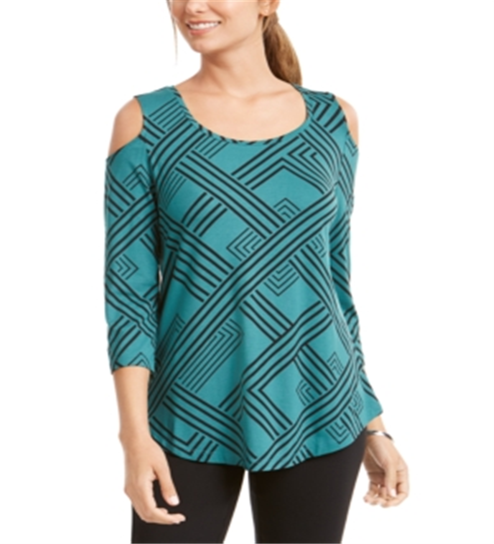 Blusa feminina JM Collection com manga 3/4 e ombros descobertos, verde, tamanho pequeno
