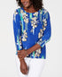 Blusa feminina estampada com manga 3/4 em jacquard, azul, tamanho médio, coleção JM