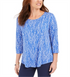 Blusa feminina estampada com manga 3/4 da coleção JM, azul, tamanho X-S