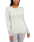 Ask a question about Suéter feminino JM Collection com punho de botão e gola redonda, tamanho grande, branco