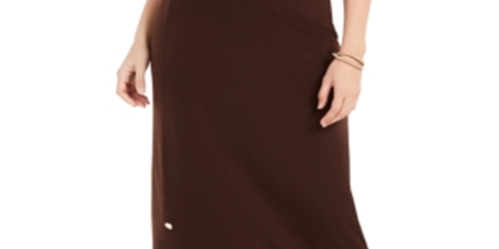 Saia feminina com fenda e botões da coleção JM, marrom, tamanho pequeno