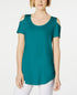 Camiseta feminina JM Collection com ombros descobertos e alças finas, azul brilhante, tamanho XX-G