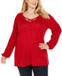 JM Collection Suéter feminino plus size com gola cruzada, tamanho 1X, vermelho
