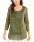 JM Collection Blusa feminina de algodão crochê patchwork verde tamanho X-S