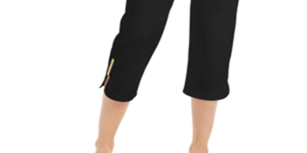 A JM Collection adiciona um toque contemporâneo a esta charmosa calça capri. Começando pelo cós com controle de barriga e conforto, e completando com punhos adornados, esta peça essencial para o seu guarda-roupa certamente ficará na frente do seu guarda-roupa. | Comprimento interno aprox. 23 | Cintura média; aprox. 11; perna reta; cropped na metade da panturrilha | Devido ao tamanho generoso