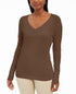JM Collection Suéter Feminino Manga Enfeitada Gola V Marrom Tamanho P