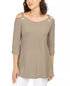 Túnica feminina com ilhós e ombros descobertos, bege, tamanho grande, da coleção JM