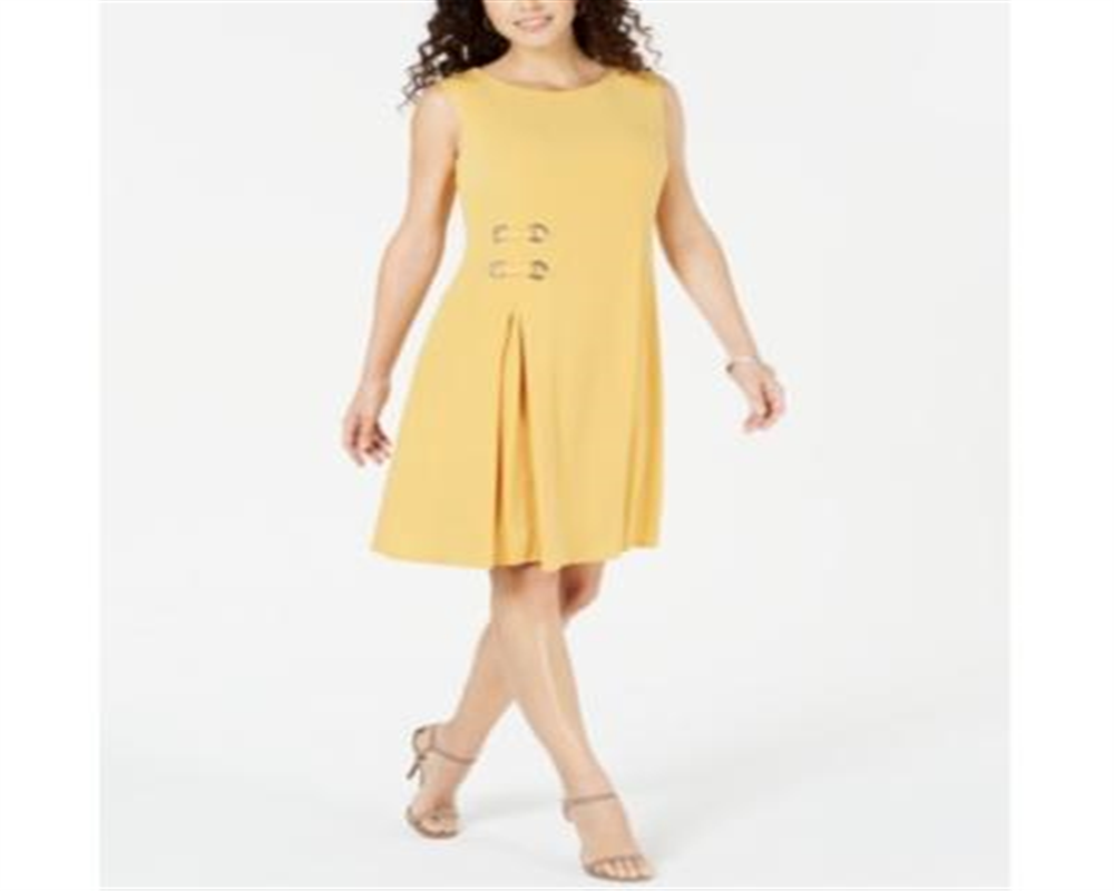 Vestido feminino com ilhós e cintura alta, tamanho pequeno, amarelo, JM Collection