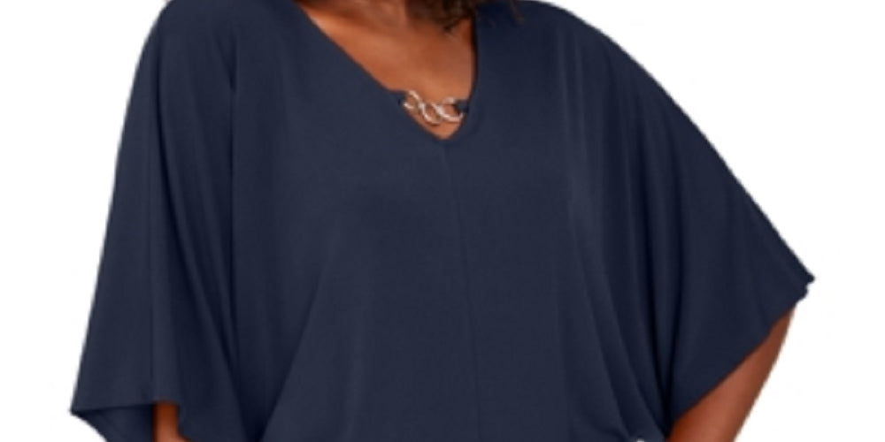 Túnica feminina JM Collection Hardware com manga morcego, azul, tamanho médio