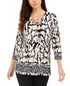 Adicione charme ao seu dia com a blusa túnica da JM Collection. O decote com detalhes em ilhós proporciona uma introdução elegante e finaliza com um contraste de estampa animal. | Caimento relaxado; aprox. 79 cm de comprimento | Devido ao tamanho generoso | sugerimos um tamanho menor para um ajuste perfeito | Decote em V com detalhe em ilhós com cadarço | Fendas na bainha lateral