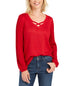 Blusa feminina JM Collection de lurex com decote em treliça, vermelha, tamanho X-S