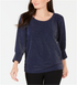 Ask a question about JM Collection Top feminino metálico com decote canoa, azul, tamanho extragrande