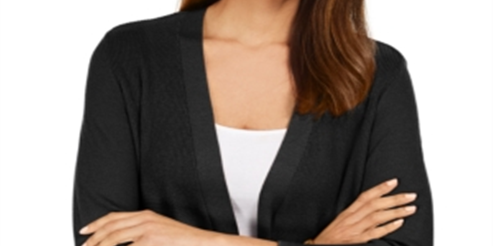 Ask a question about Cardigan feminino JM Collection com mangas divididas e nervuras mistas, preto, tamanho médio