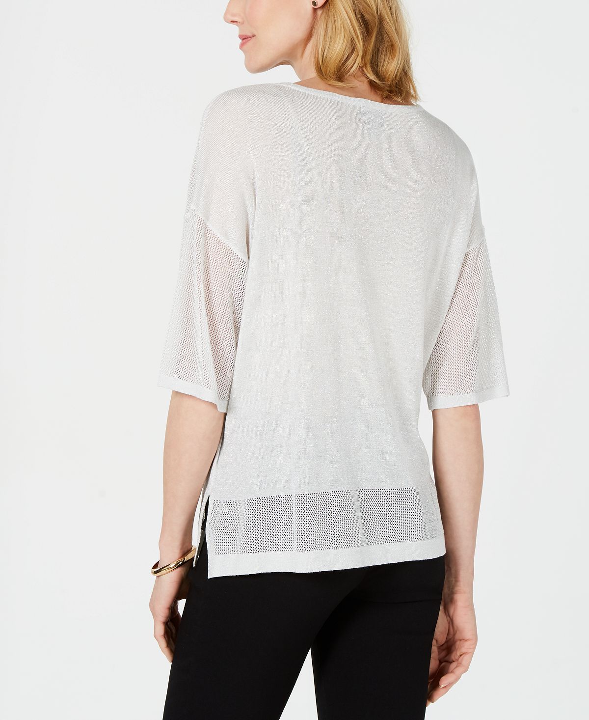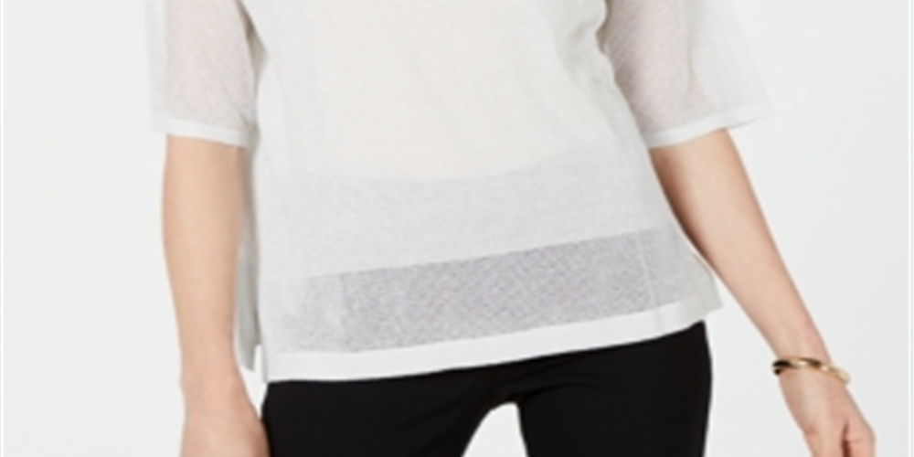 JM Collection Suéter Feminino Novelty Stitch Branco Tamanho Médio