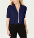 Cardigan feminino JM Collection com frente aberta e mangas curtas, azul, tamanho grande