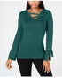 Top feminino JM Collection Petite com ilhós e decote em V, verde, tamanho PL