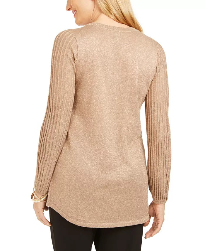 JM Collection Suéter feminino pequeno com manga plissada, marrom, tamanho pequeno