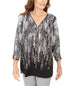JM Collection Top feminino estampado com decote em zíper, tamanho pequeno, preto, tamanho médio