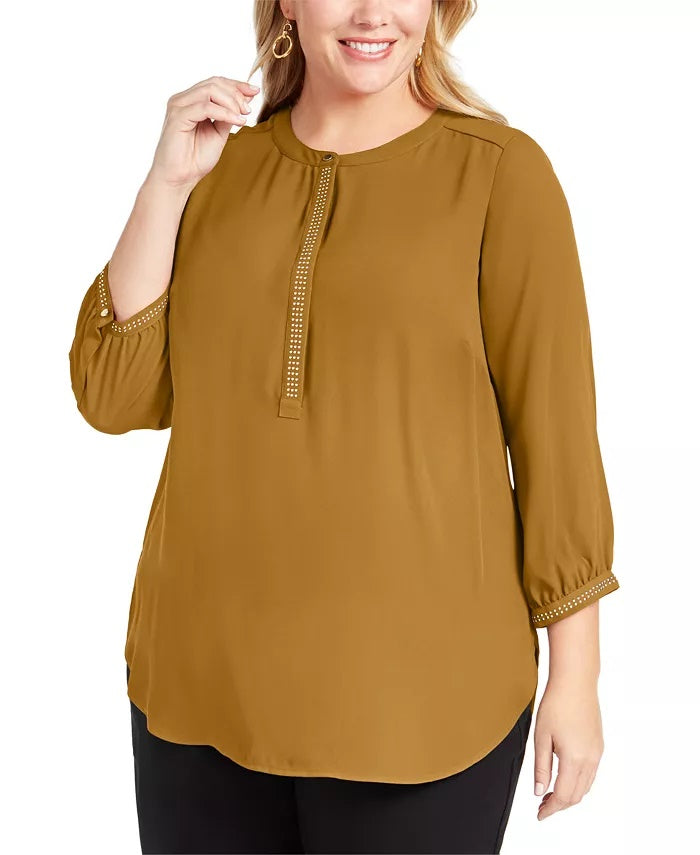 Blusa feminina plus size plissada com decote profundo e costas abertas, tamanho 4X, da coleção JM